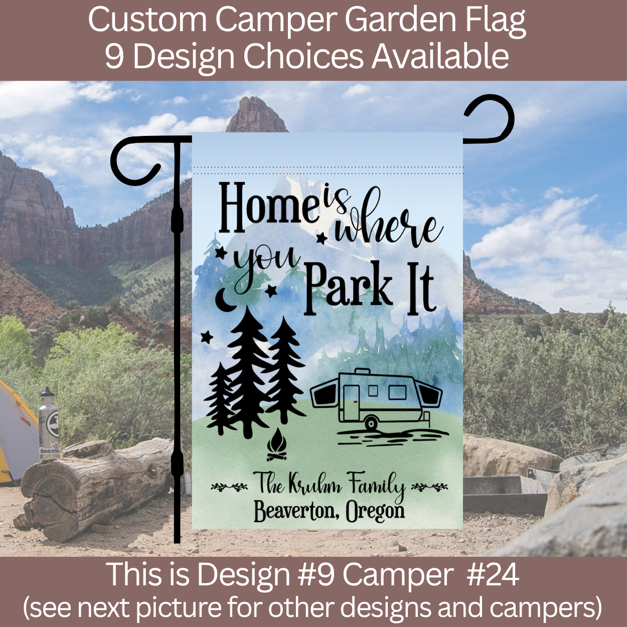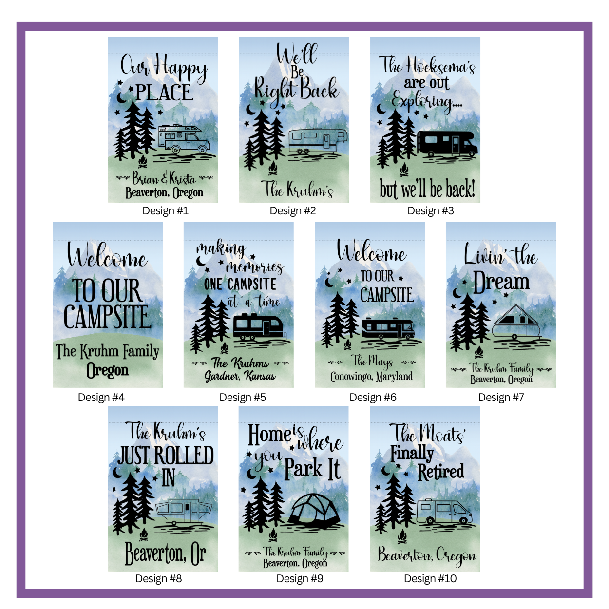Create the perfect "home away from home" with this Welcome to our campsite decorative flag. This makes a perfect gift! Perfect way to meet others at the campsite having this outside your RV, trailer, popup, Winnebago, truck trailer, class c trailer, tent, glamping.