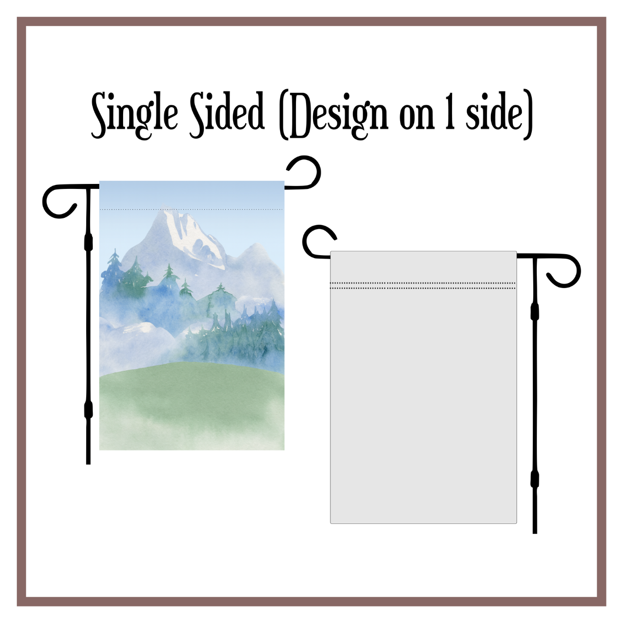 Each flag measures approx 12"x 18" (varies a little) and can be printed on 1 side or both sides, premium polyester, mildew resistant, material designed for outdoor display that will be a lasting decoration for your home. It's made with sublimation ink, meaning that the design is in the fibers of the flag. This will not peel like vinyl does.