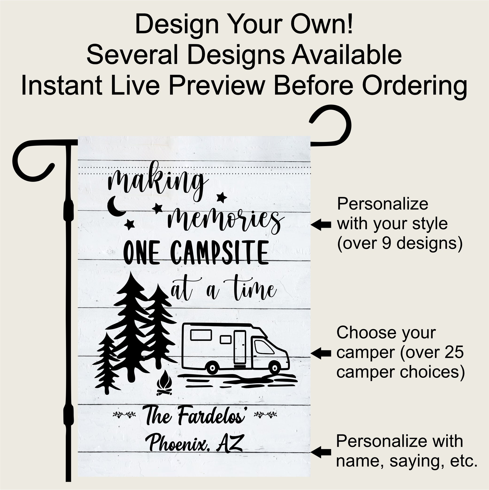 Create the perfect "home away from home" with this Welcome to our campsite decorative flag. This makes a perfect gift! Perfect way to meet others at the campsite having this outside your RV, trailer, popup, Winnebago, truck trailer, class c trailer, tent, glamping.