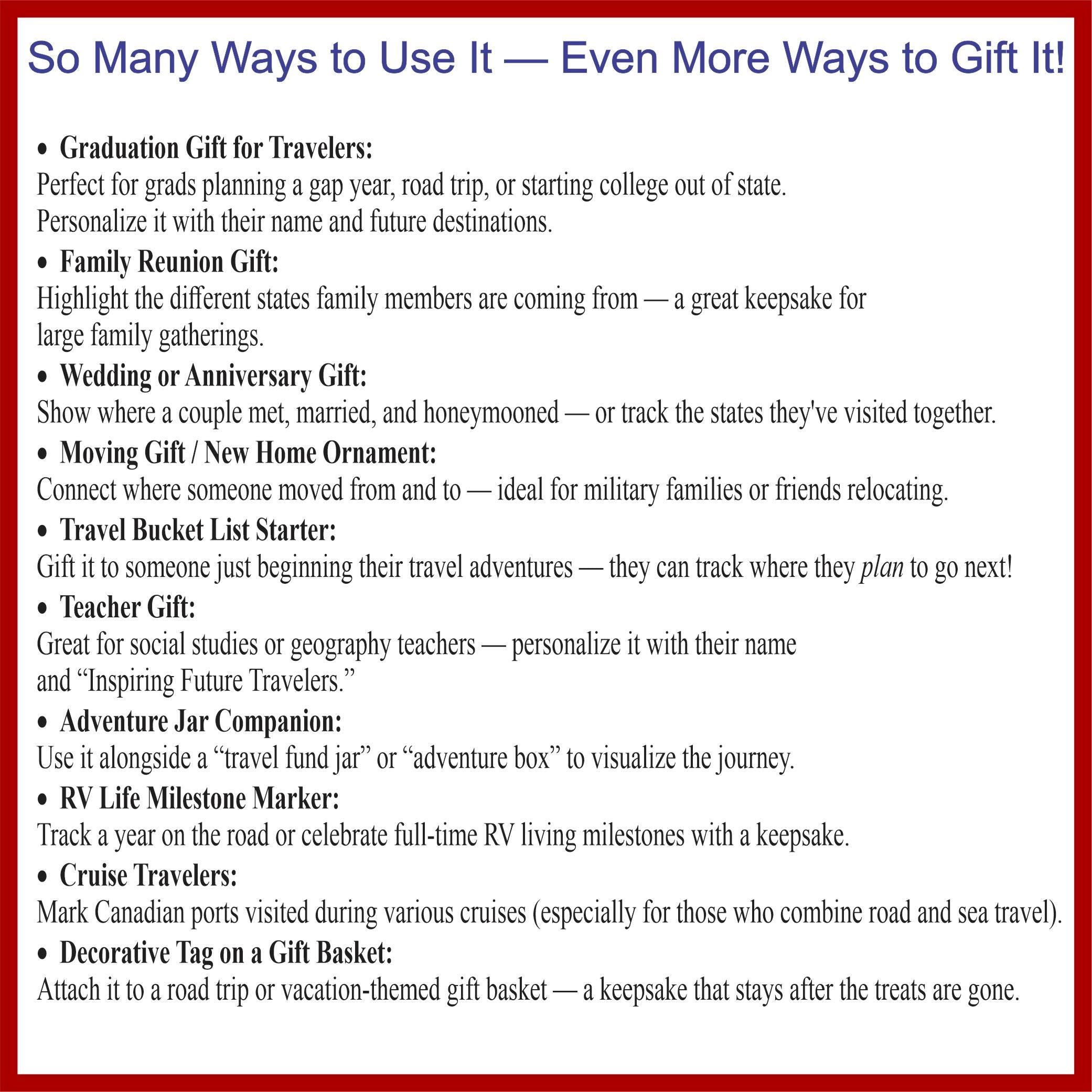 -Commemorate a special road trip or cross-country adventure