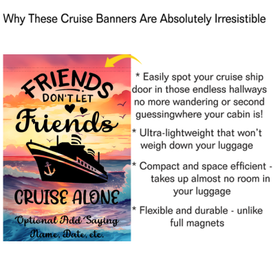 Love this design? Explore our full Cruise Collection to find matching magnetic door banners, luggage tags, and personalized keepsakes. Create a coordinated look for your cabin door and make your next voyage unforgettable!