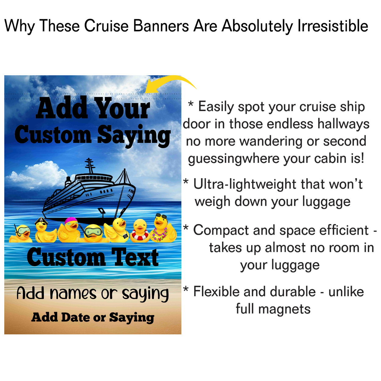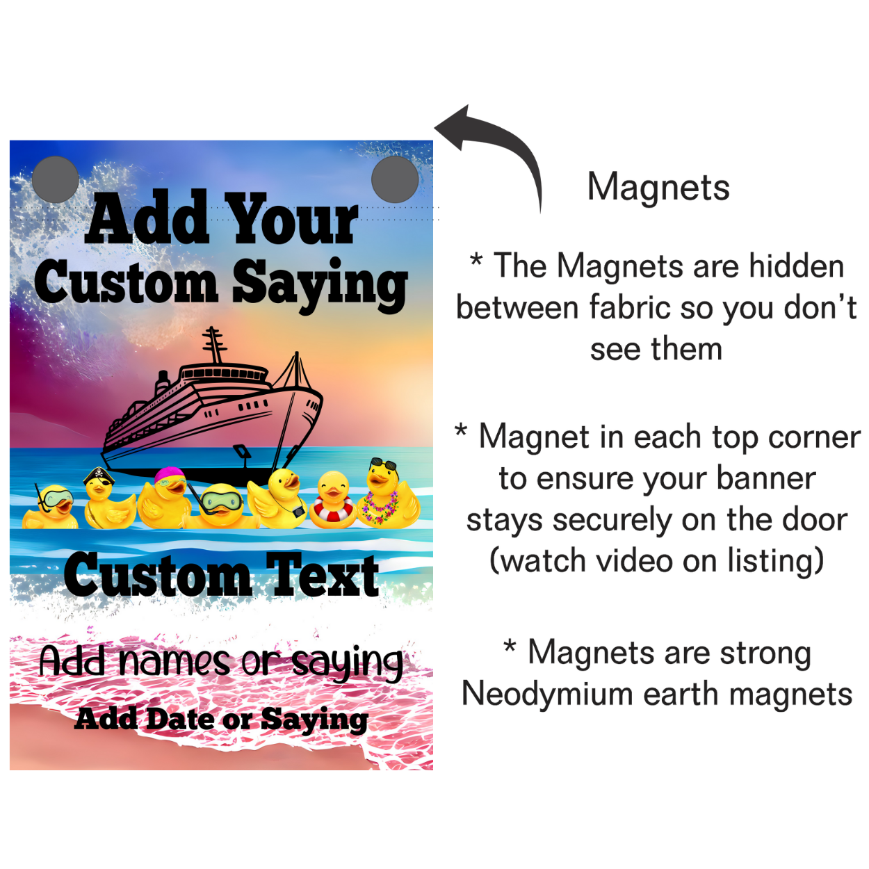 Personalized Cruising Duck Banner, Gift for Cruisers, Magnetic Cruise Banner, Cruise Magnet, Family Cruise Product form Personalized Cruising Duck Banner, Gift for Cruisers, Magnetic Cruise Banner, Cruise Magnet, Family Cruise $23.50 Style up your cruise ship door with this custom custom magnetic cruising ducks door decoration banner. What a fun way... Read more Read more Add to cart Reviews 0 reviews Share with your friends Share WhatsApp Deel Tweet Pin it Messenger Email