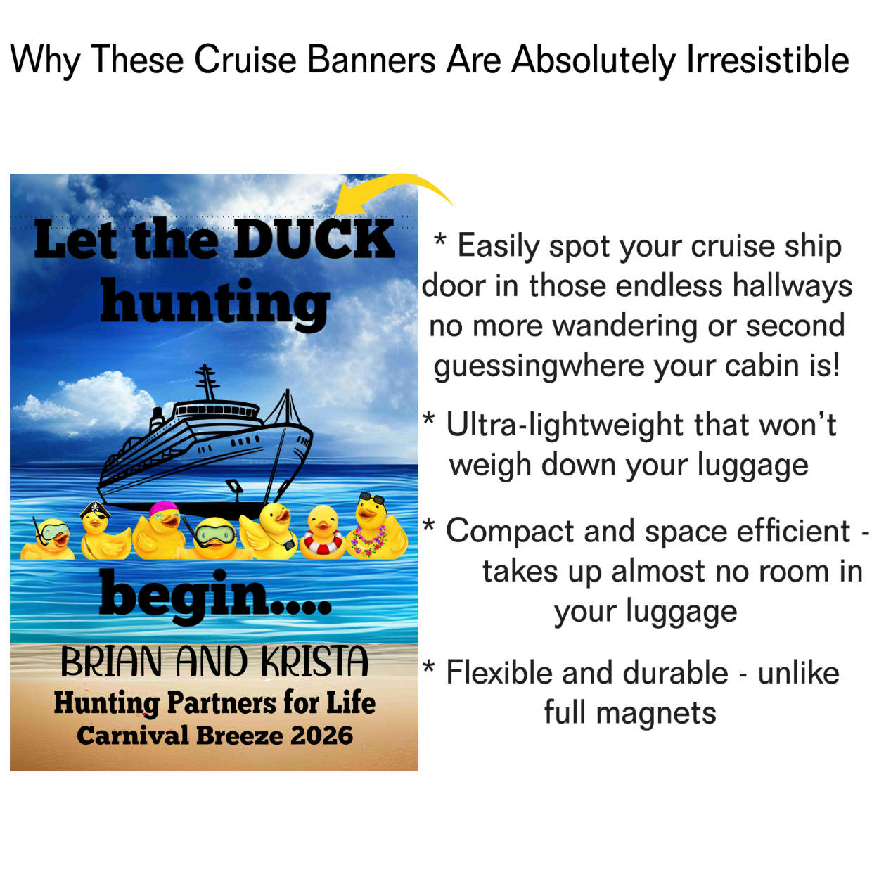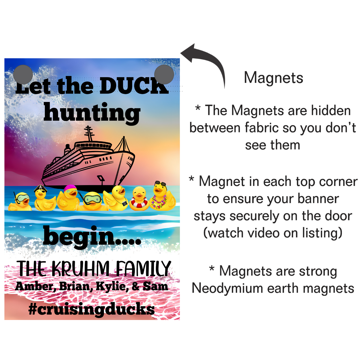 Personalized Cruise Door Decor, Let the duck hunting begin, Magnetic Cruising Banner, personalized cruise ship door magnet sign, large ship decor for stateroom, vacation