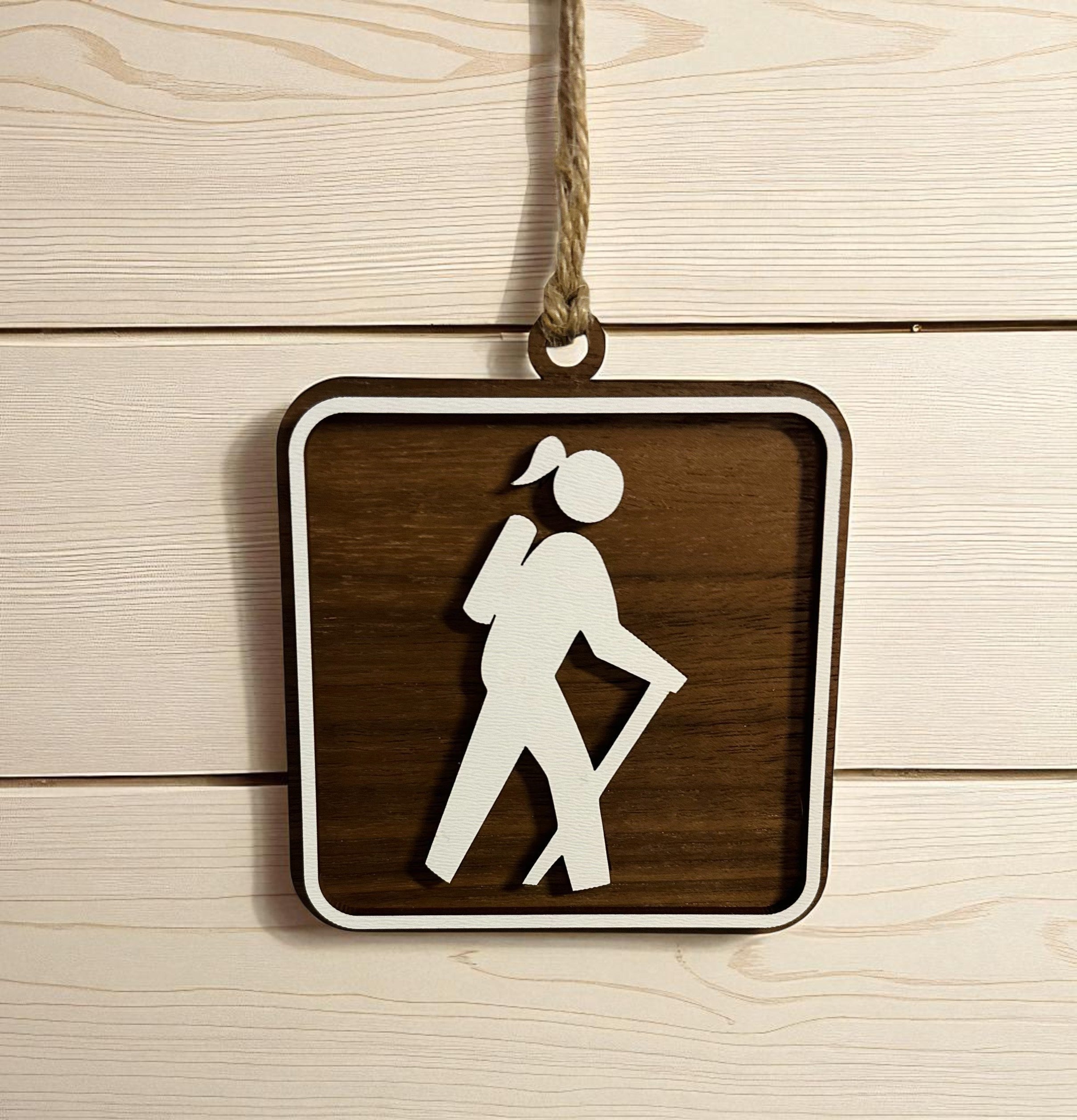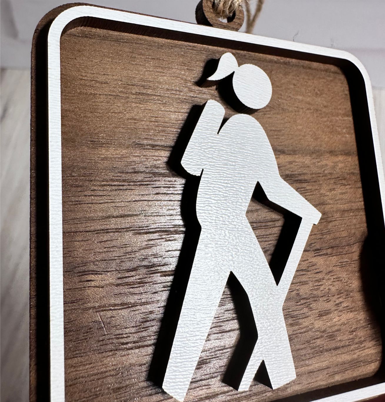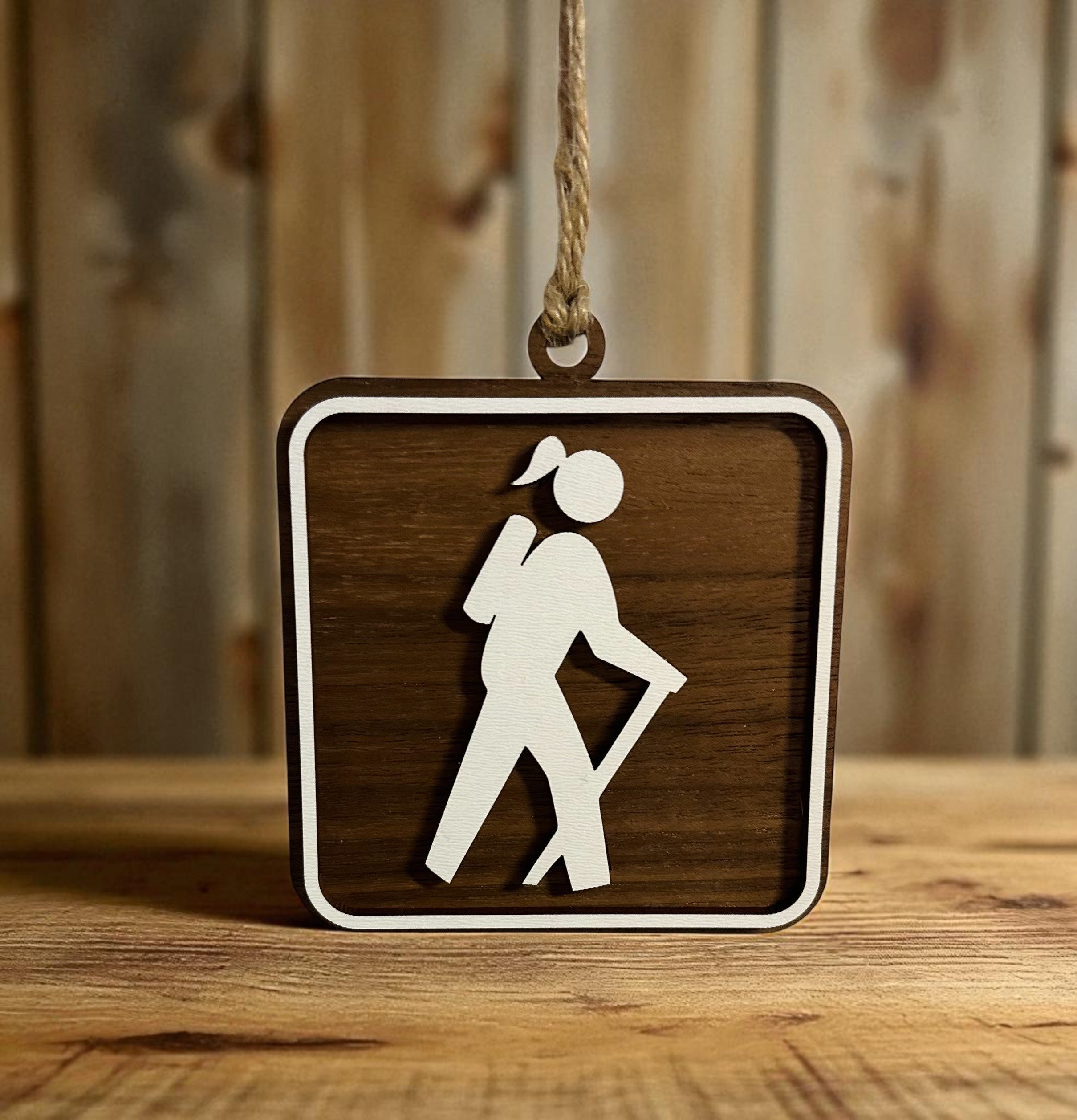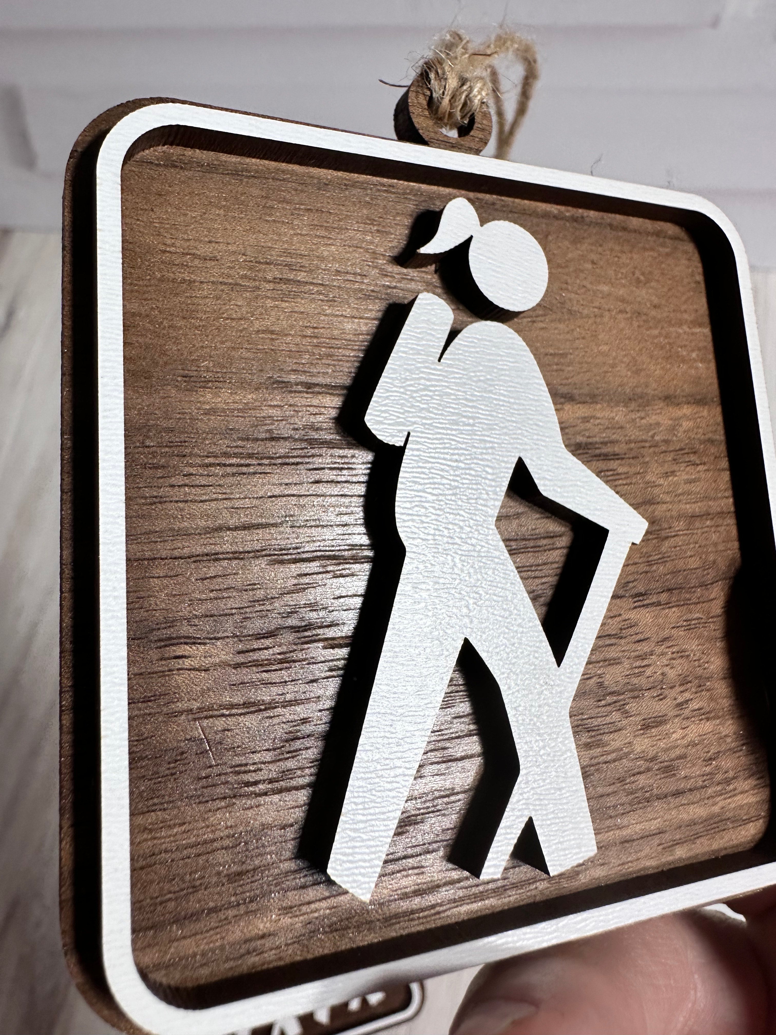 Bring the spirit of the great outdoors to your holiday tree with this handcrafted Hiking Trail Sign Ornament. Inspired by the iconic national park hiker symbol, this ornament is perfect for campers, backpackers, and adventure seekers.