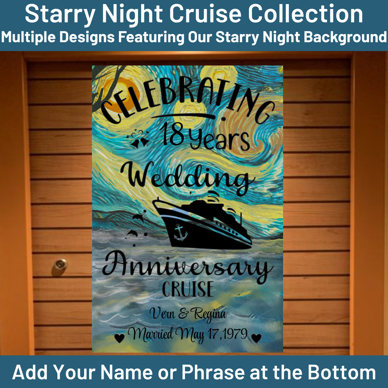 It’s a fun and easy way for your family and friends to find your stateroom cabin door when walking down those endless hallways where every door looks the same. These banners also make thoughtful gifts for cruise lovers — perfect for birthdays, graduations, anniversaries, retirements, or “just because” surprises.