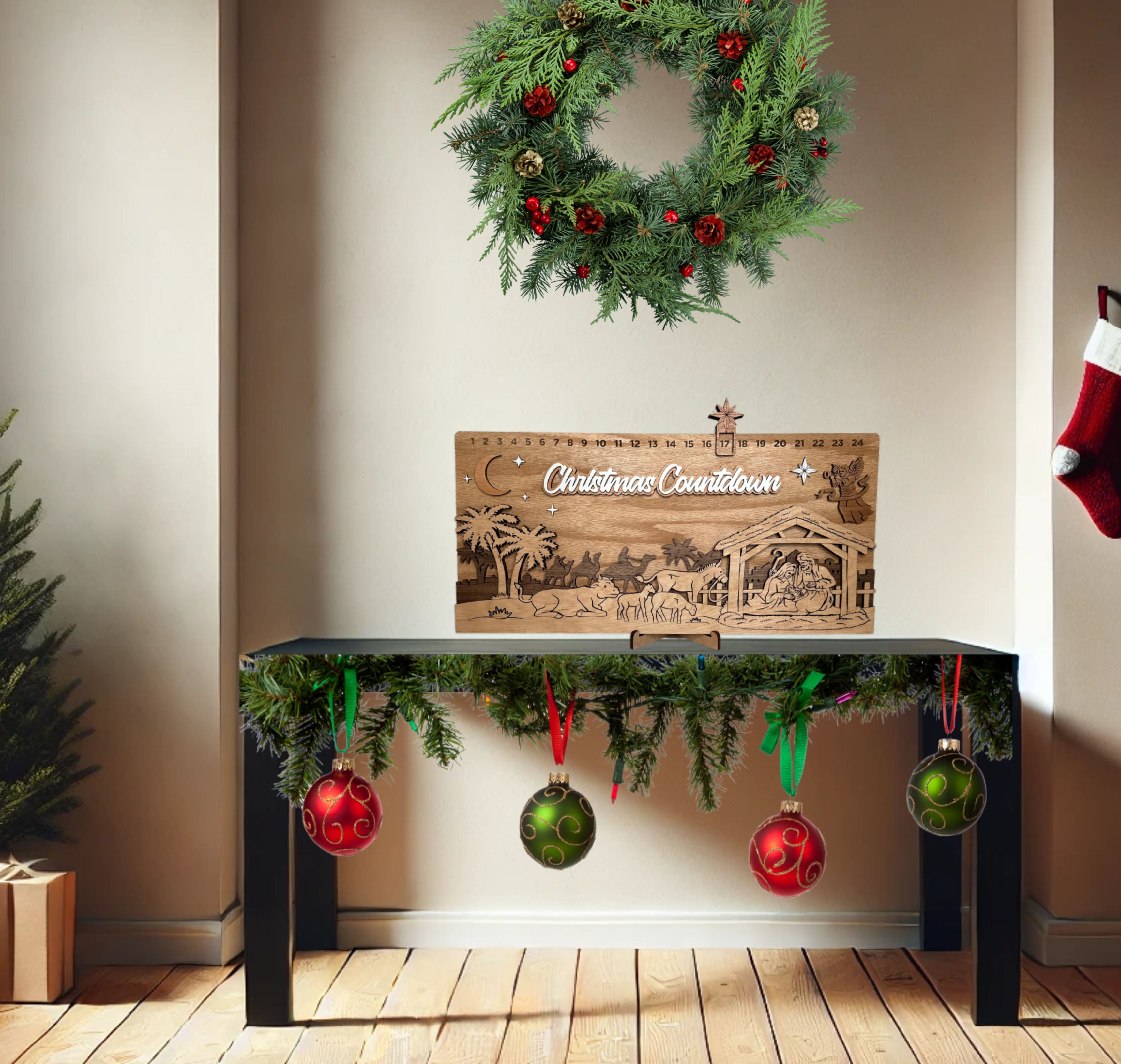 Type: Christmas Countdown Sign, Nativity Advent Calendar, Holiday Home Décor