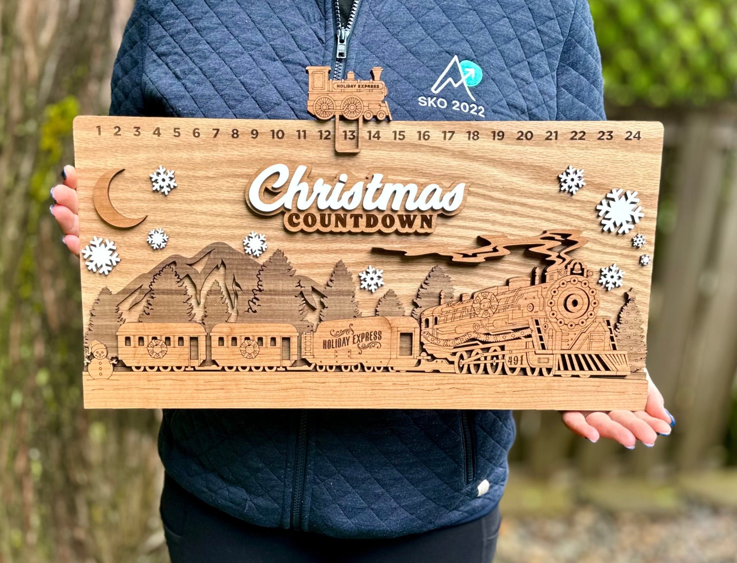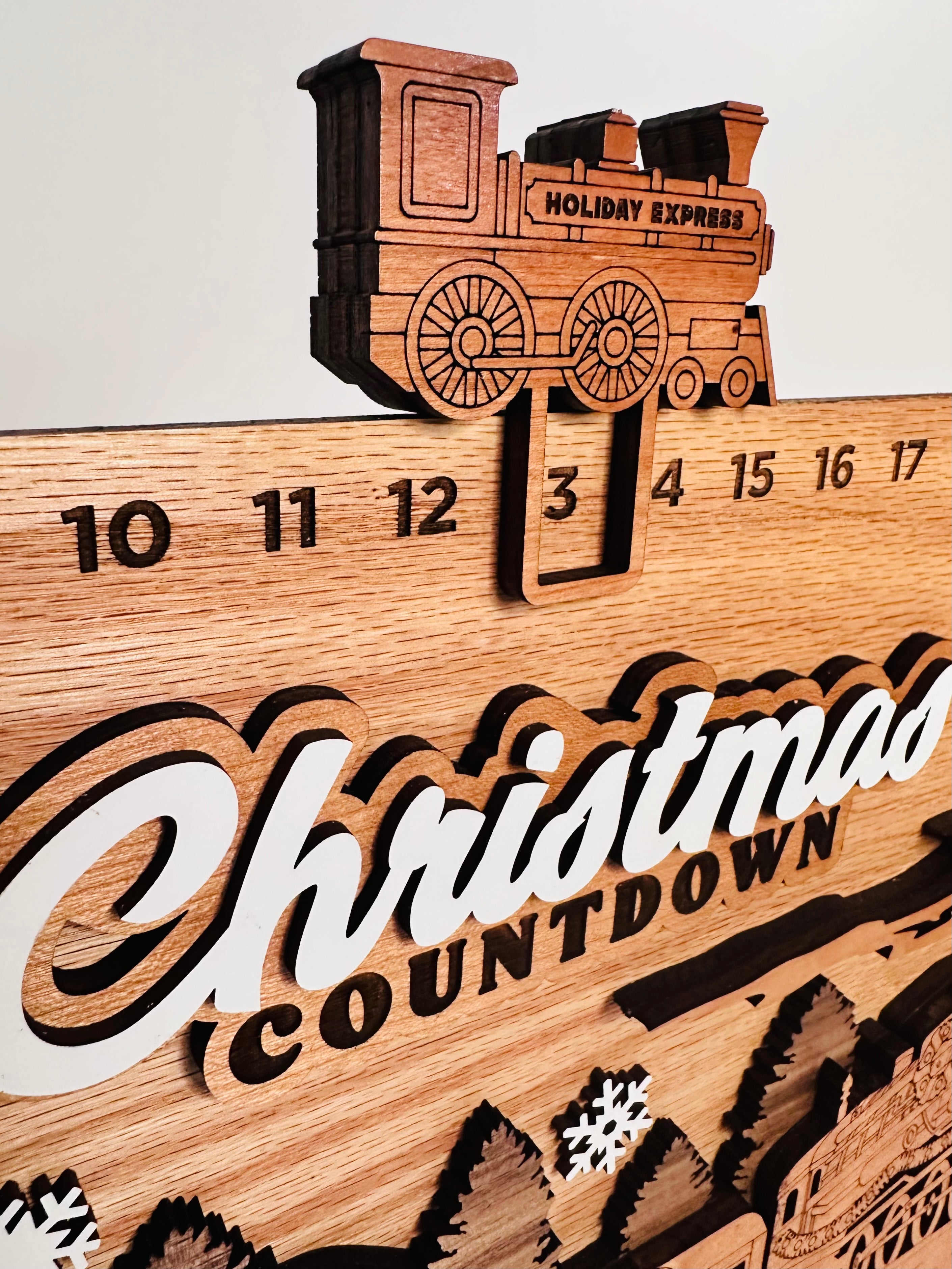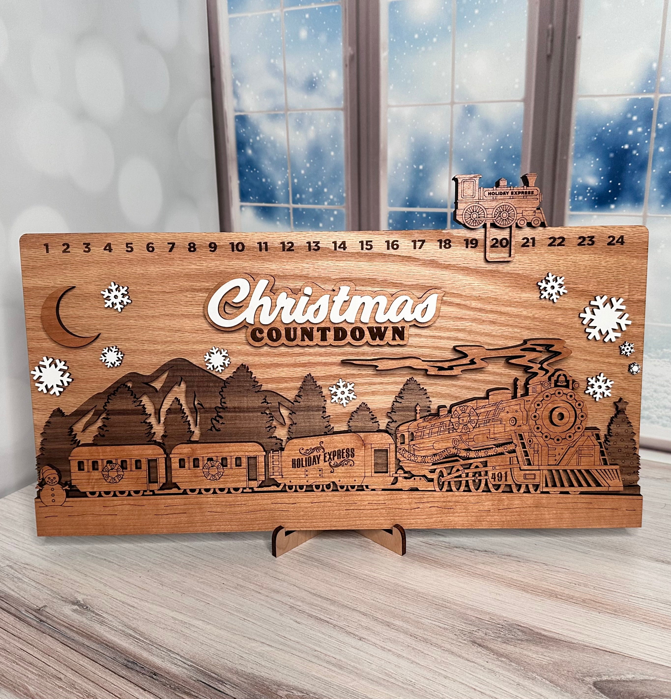 Special Features: Handcrafted, Layered Wood Design, Moveable Countdown Train, Freestanding
